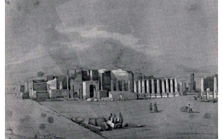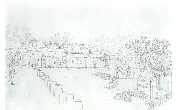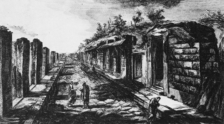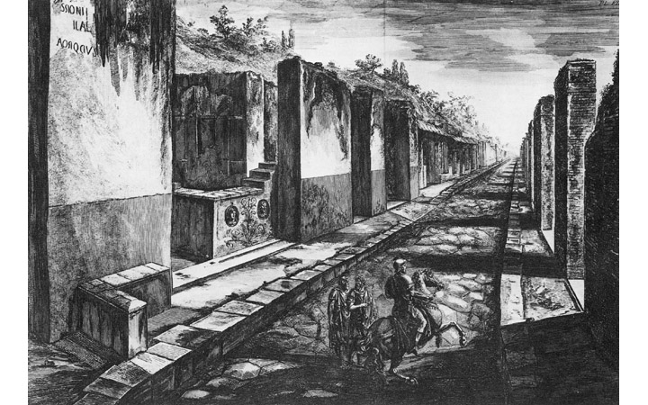 Veduta di tutte le botteghe a destra e a sinistra della strada presa di faccia alla porta della città LEGGI