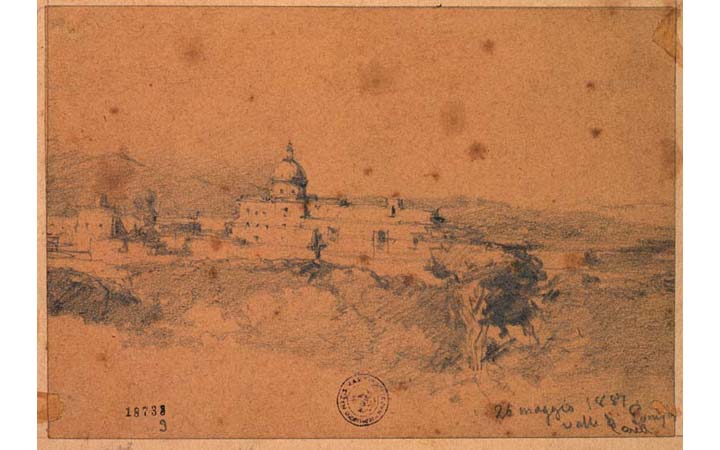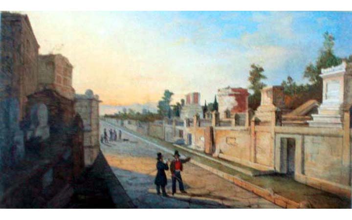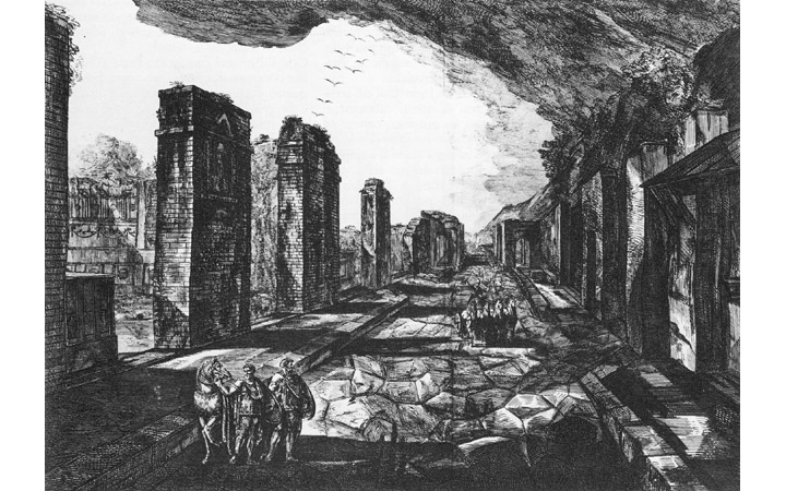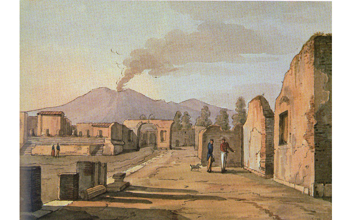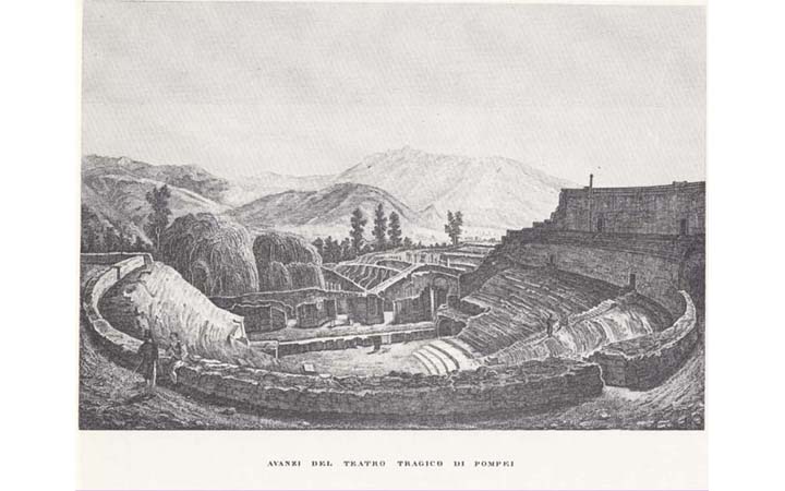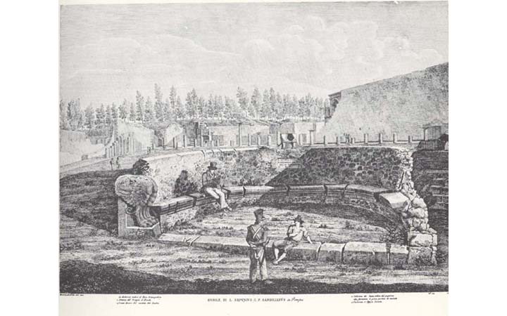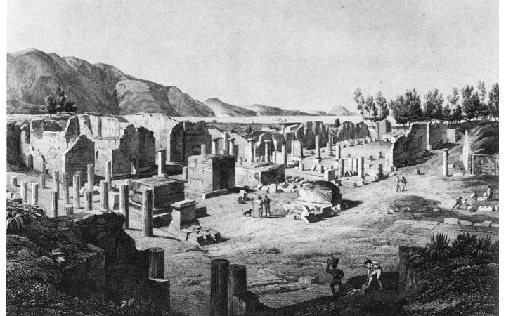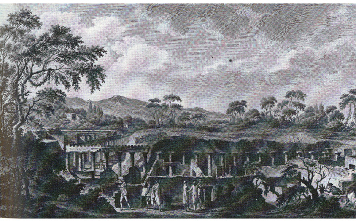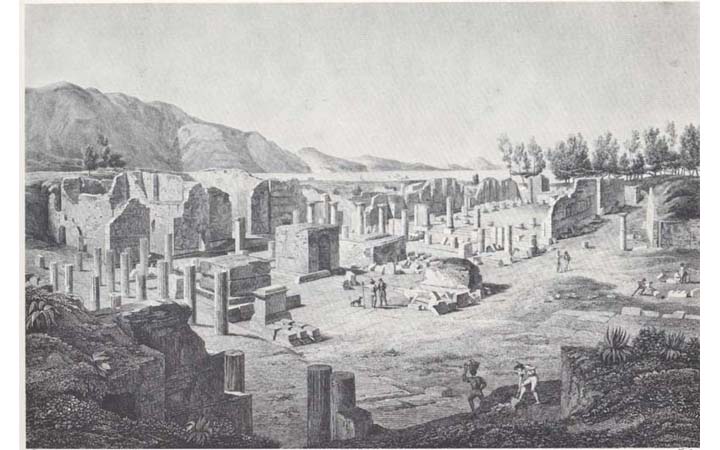 Vue Générale de l’Etat actuel des fouilles ordonnées par le Roi de Naples dans le lieu que l’on pense avoir été le Camp ou Quartier des Soldats à Pompeii LEGGI