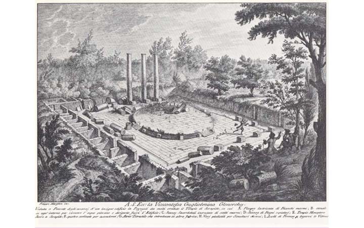 Veduta a ponente degli avanzi d’un insigne edificio in Pozzuoli da molti creduto il tempio di Serapide LEGGI