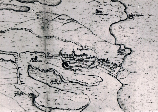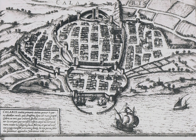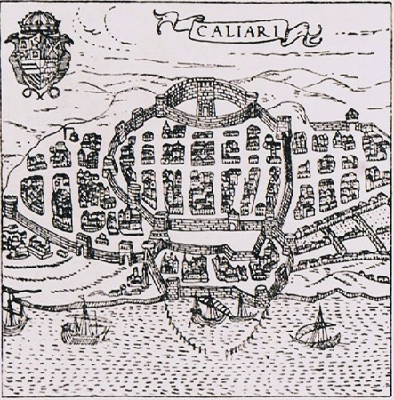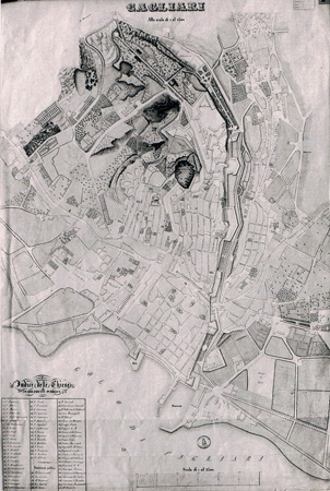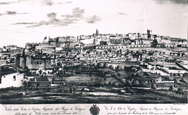 Veduta della città di Cagliari, Capitale del regno di Sardegna, dalla parte di Villanova, ossia da Levante LEGGI