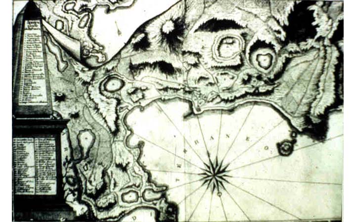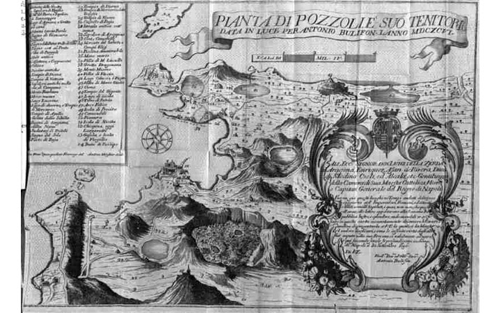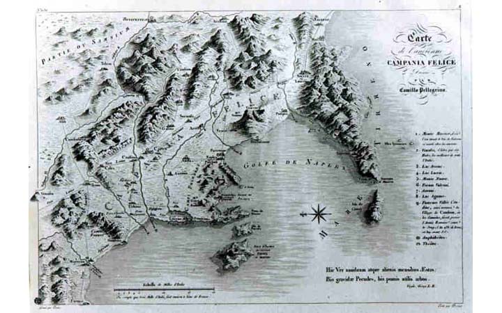 Carte du golphe de pouzzoles avec une partie des champs phlégréen dans la terre de labour