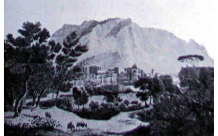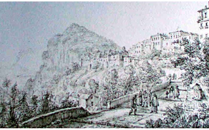 Veduta della città di Capri disegnata dalla strada che mena alle rovine del Palazzo di Tiberio