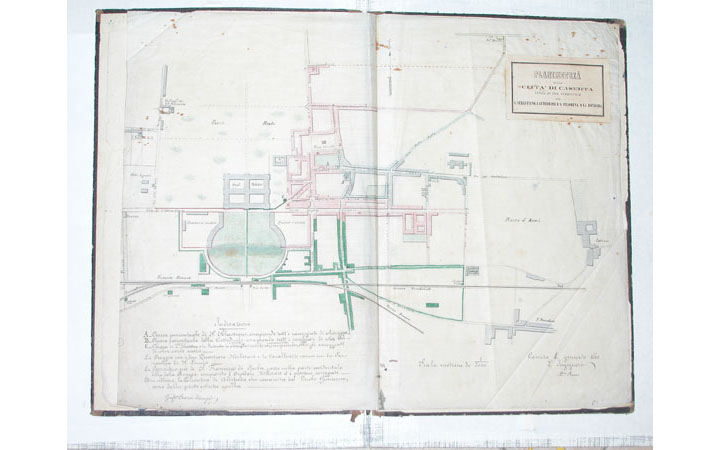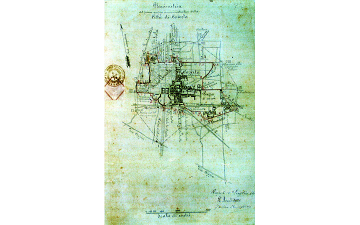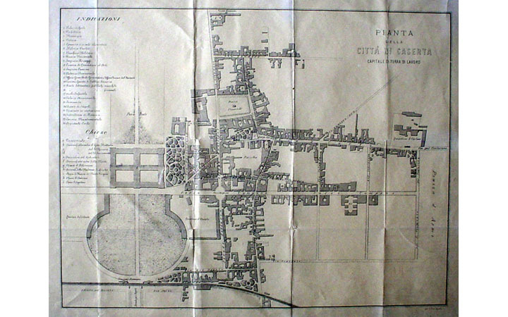 Planimetria della città di Caserta divisa in tre parrocchie cioé S. Sebastiano, Cattedrale e S. Filomena o la Rotonda LEGGI
